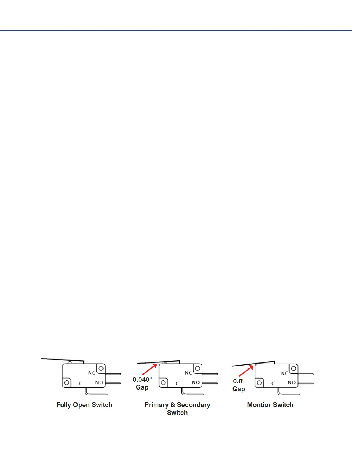 The proper distance to adjust the Primary and Secondary switches is 0.040” (1.0mm). This distance is