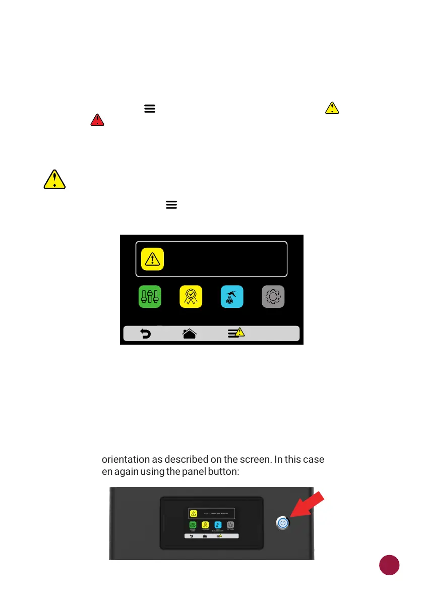 b) On the Options icon , a yellow signal will appear for alerts ( ) and red TEC