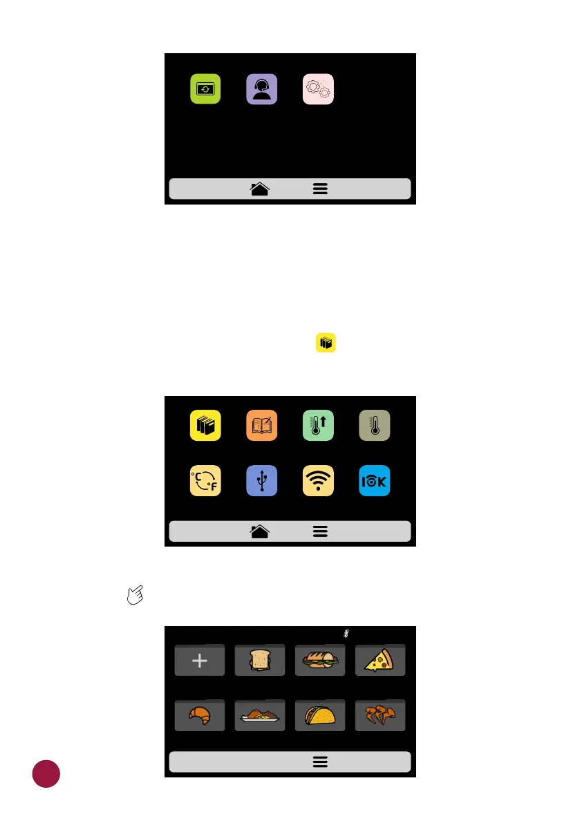pre-heating, the oven will show the recipes for the selected pre-heating group.