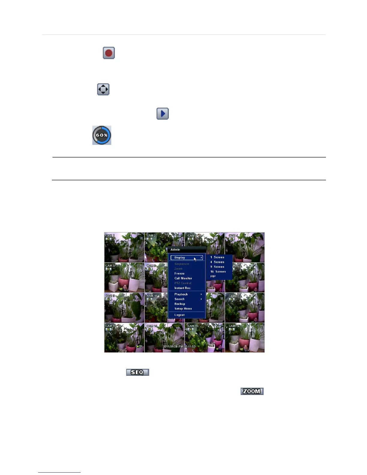 Circle icon button means the HDD usage percentage by video recording. If it shows 60%, then 60% of HDD space