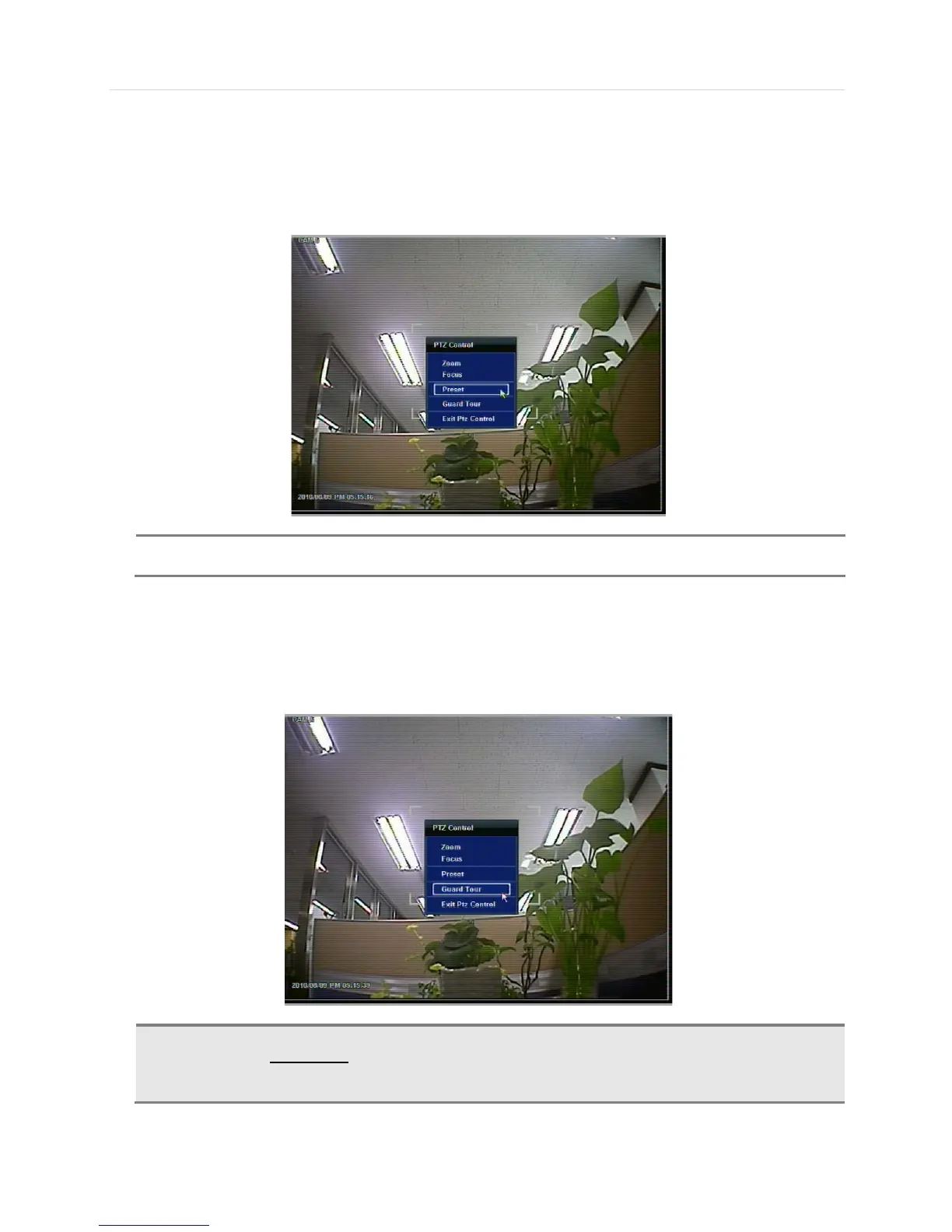function. The connected PTZ camera must support touring functions. “GUARD TOUR” on the pop-up menu can be enabled