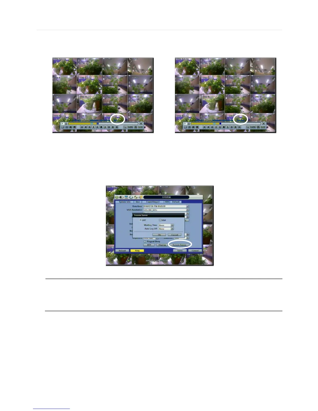 To make SCREEN SAVER setting on the DVR, go to the menu setup: SYSTEM > SYSTEM INFO and click “SCREEN