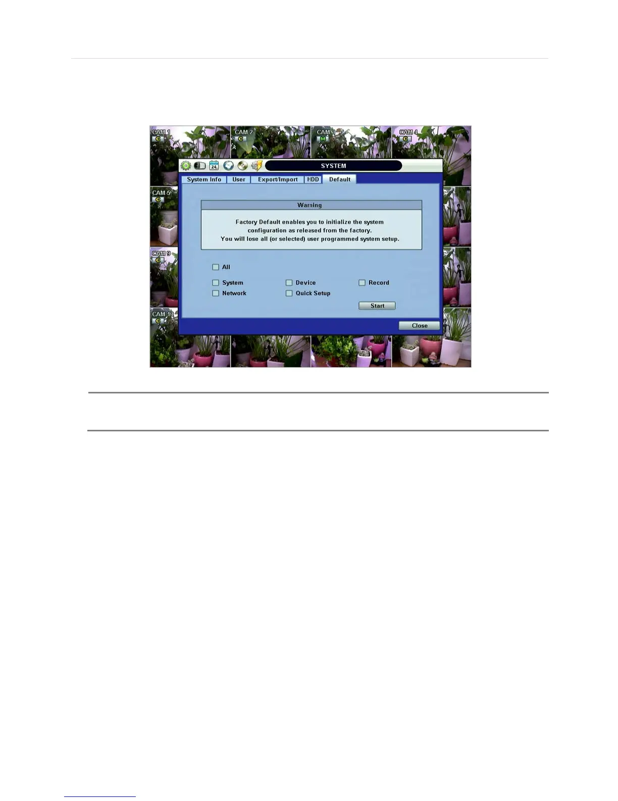 user will be deleted. The system setting will be sent to factory defaults. The recorded video data will not be