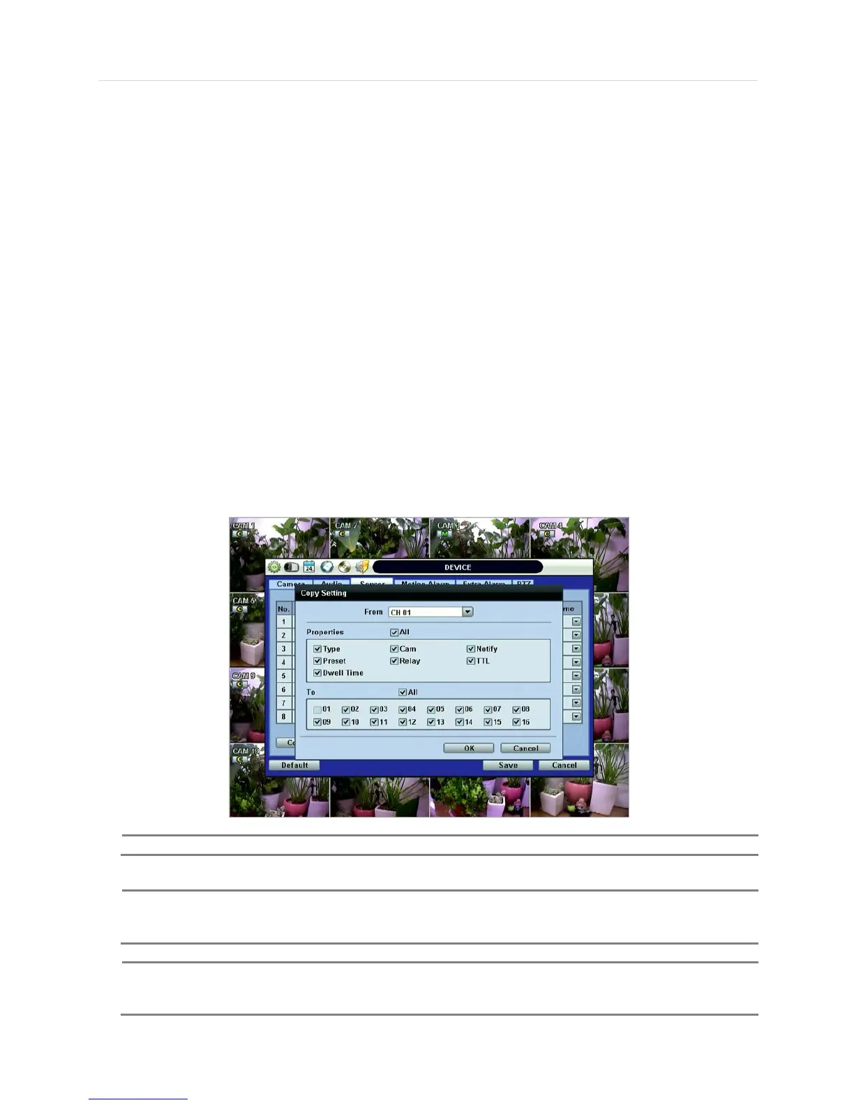 wants to copy from at the “From” field. Choose the parameters such as Type, Cam, Notify, Preset, Relay, and
