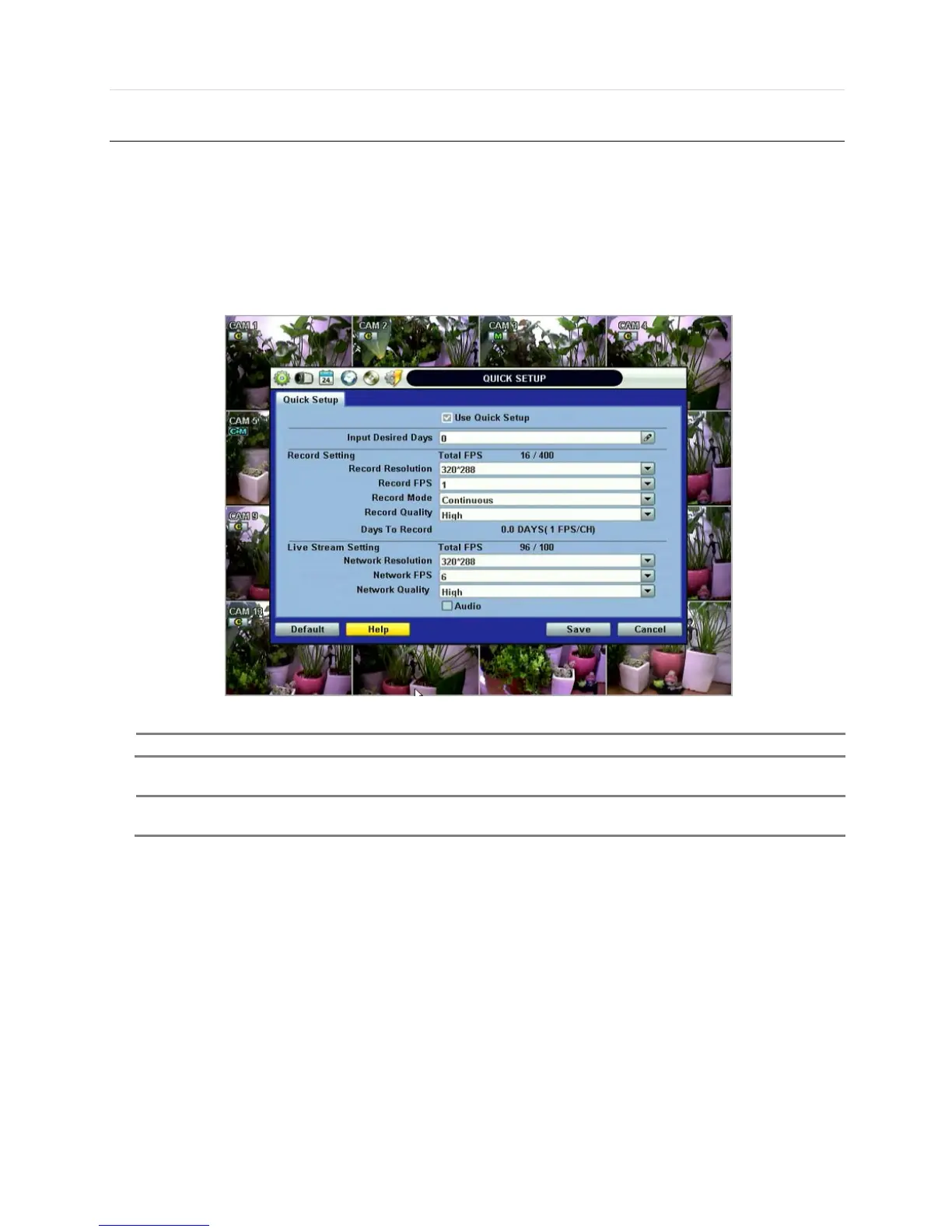 Quick Setup helps user make simple configuration for recording resolution, entire recording speed by frame, recording mode,