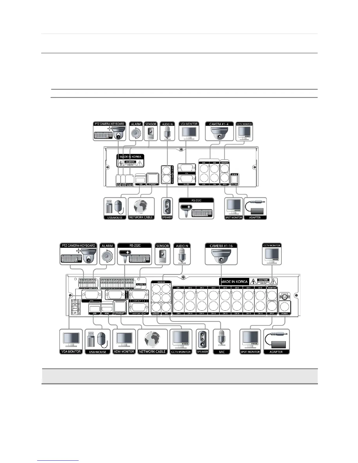 This section describes how to connect peripheral devices efficiently to the DVR.