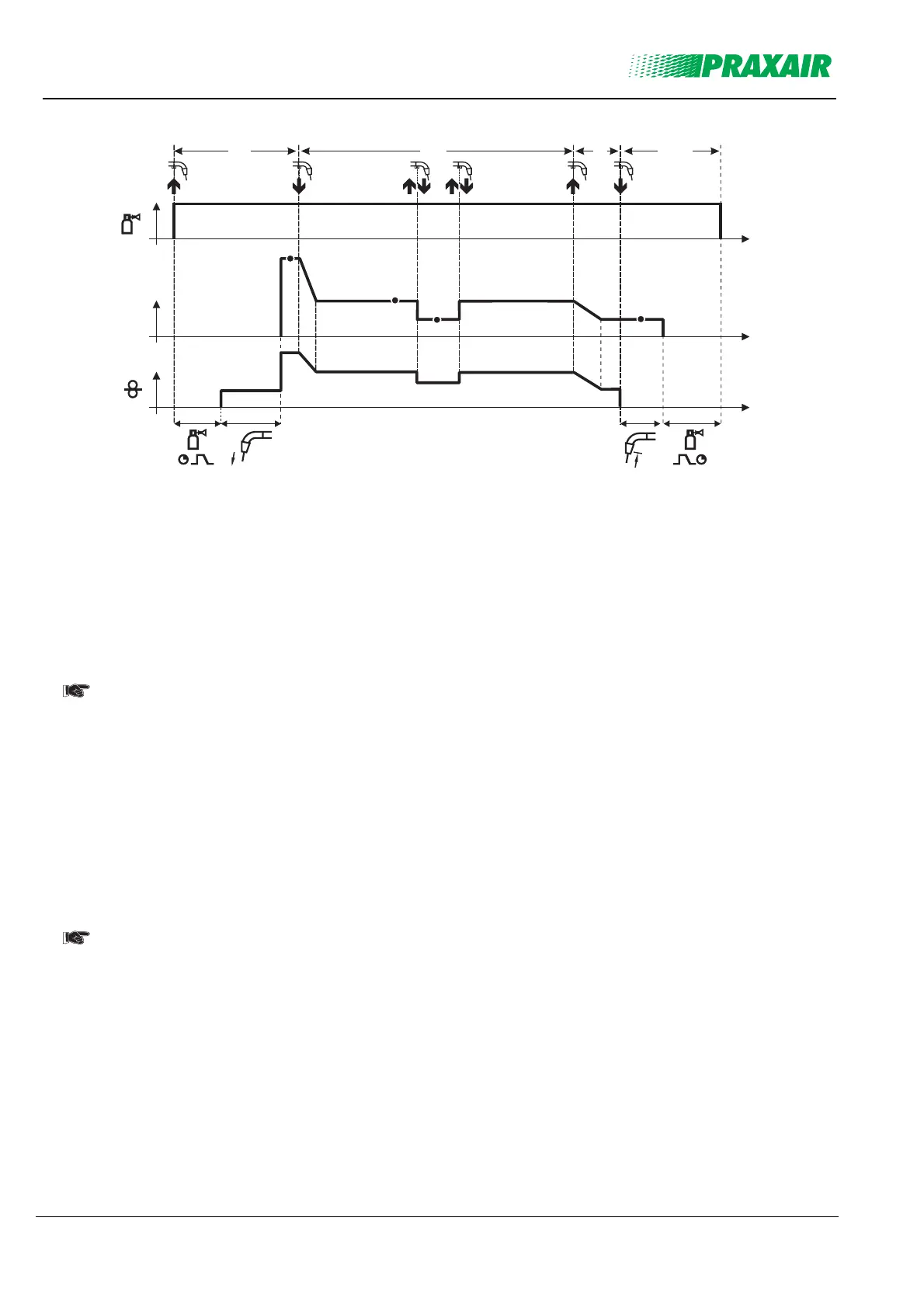 • Arc ignites after the wire electrode makes contact with the workpiece, welding current is flowing (start