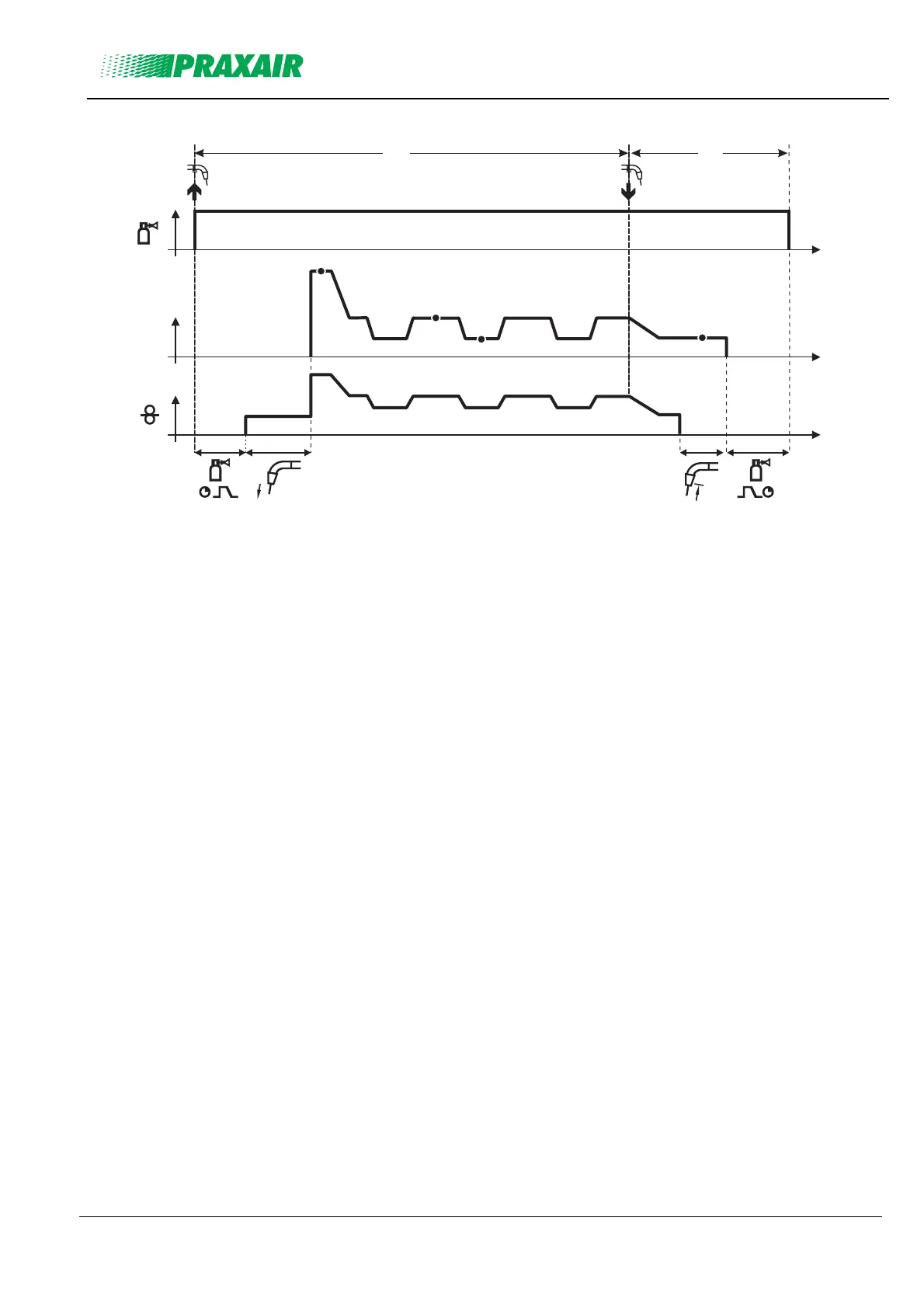 • Arc ignites after the wire electrode makes contact with the workpiece, welding current is flowing (start