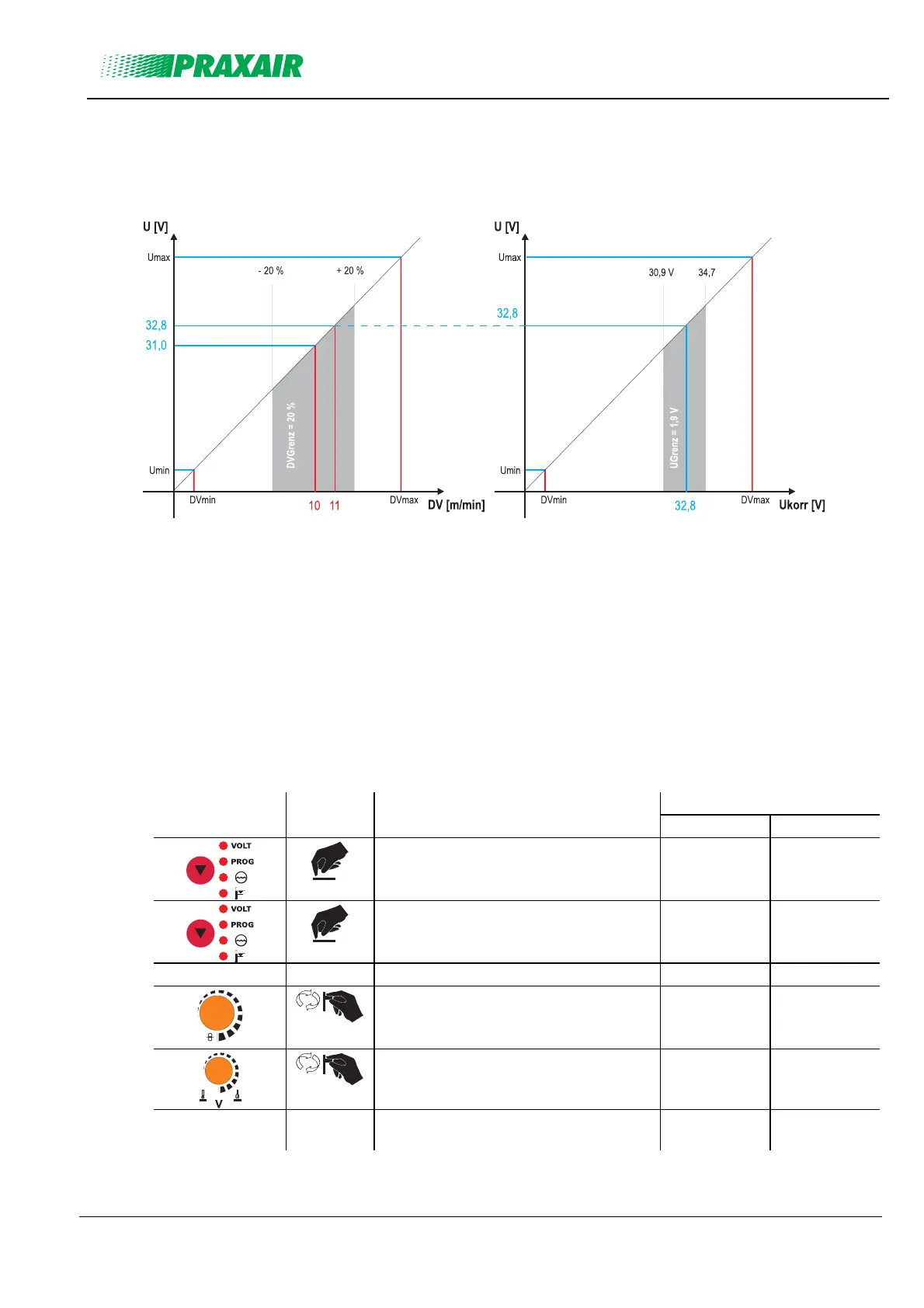 Now the welding voltage can be corrected by further 1.9 V (30.9 V and 34.7 V).