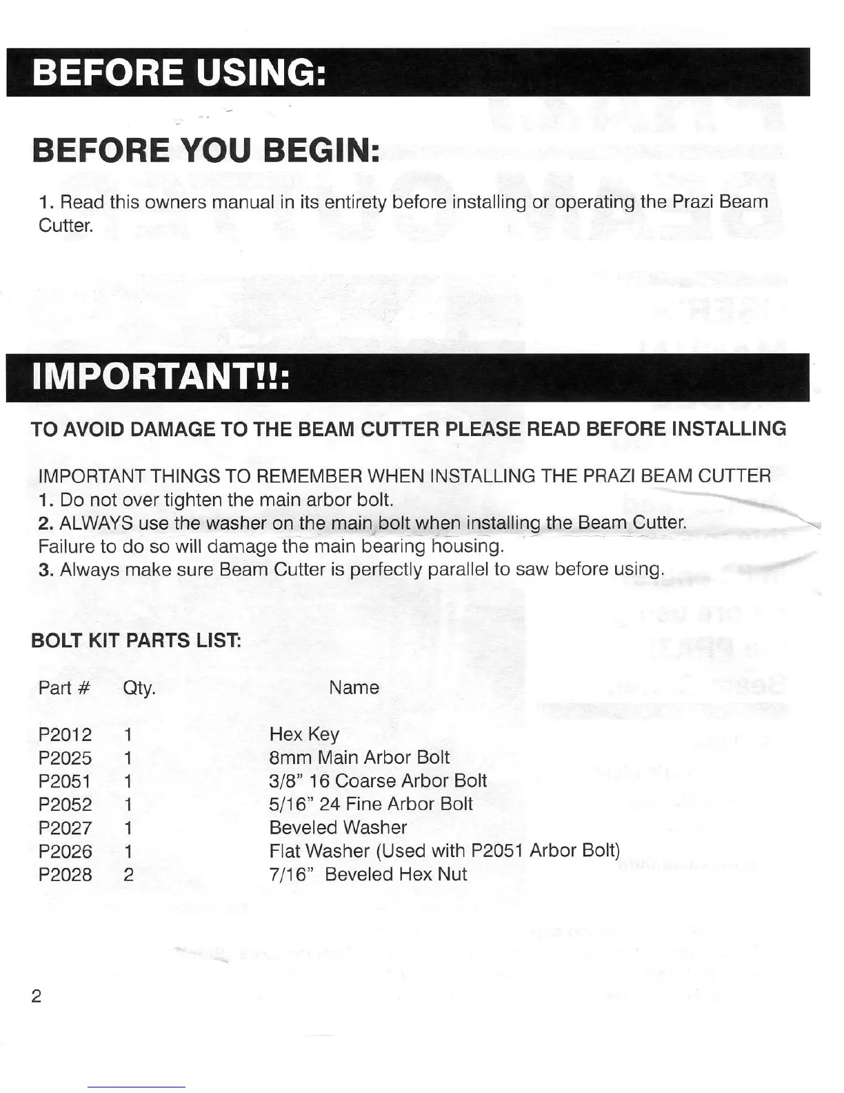 Prazi PR-2700 - Before Using Precautions; Important Installation Precautions