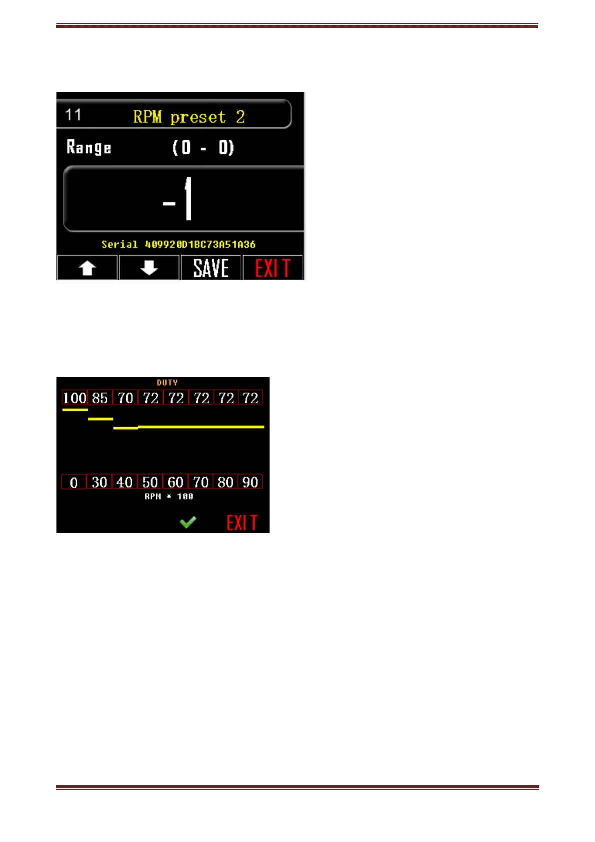 The line on the top of the screen is about the duty cycle. Every RPM rate corresponds