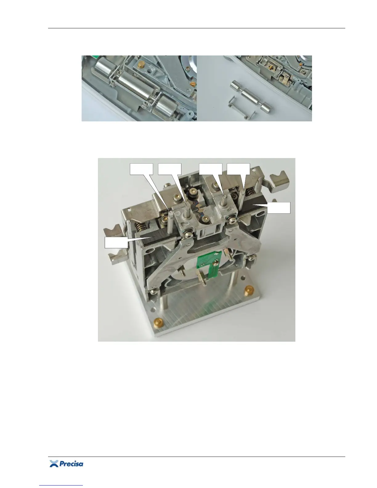 7. To protect the weighing cell, fix both assembly jigs [7] and [8] with the 4 assembly pins [9].