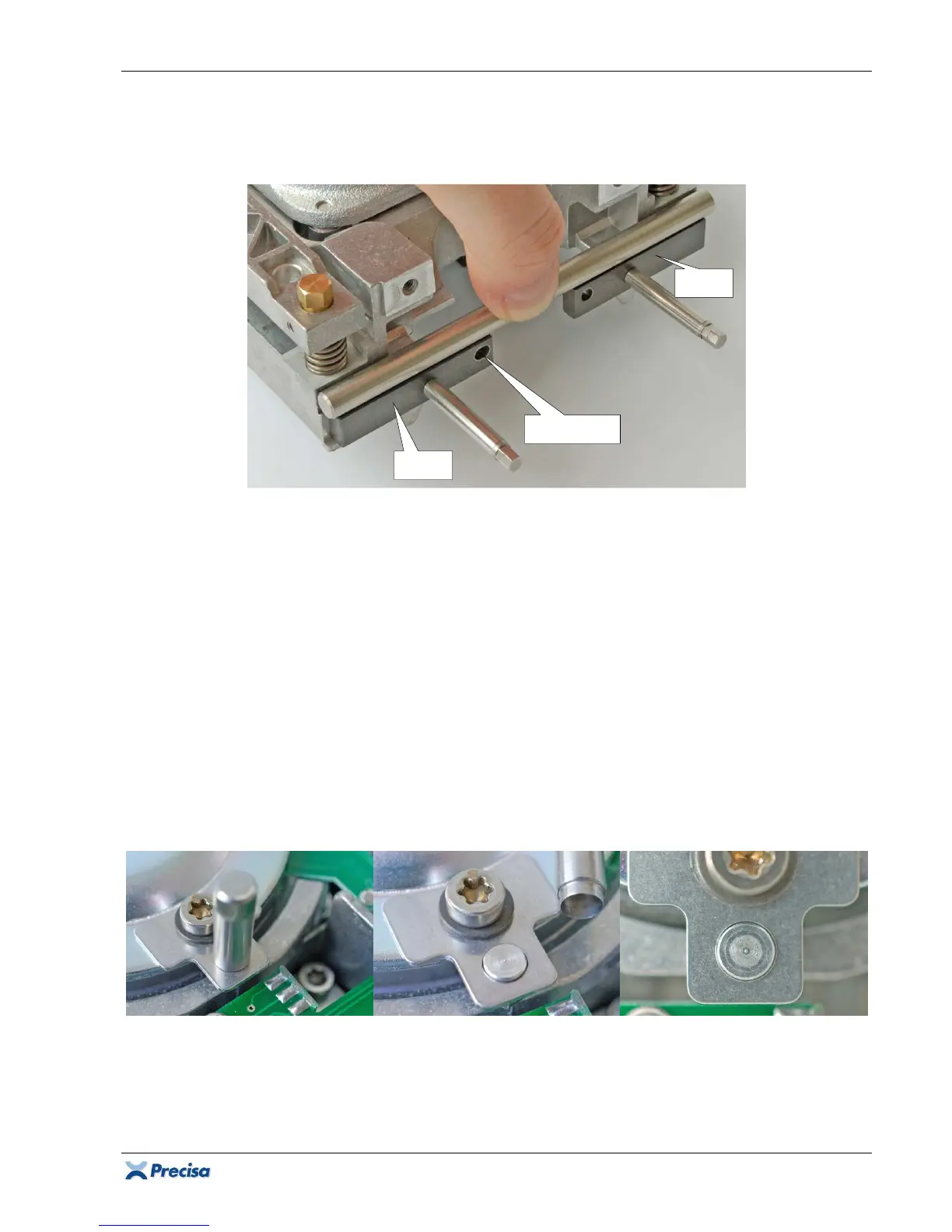 Messingschrauben (23) und 2 Unterlagsscheiben (31) festschrauben. Der Zentrierstift [11] muss