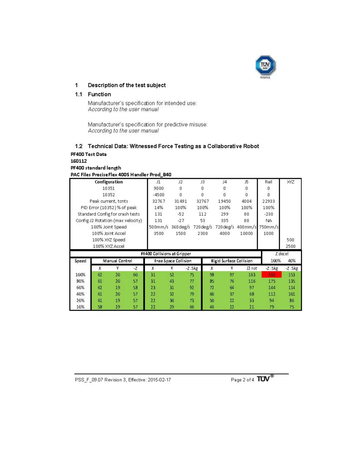 PreCise PF3400 - Description of the Test Subject; Function; Technical Data