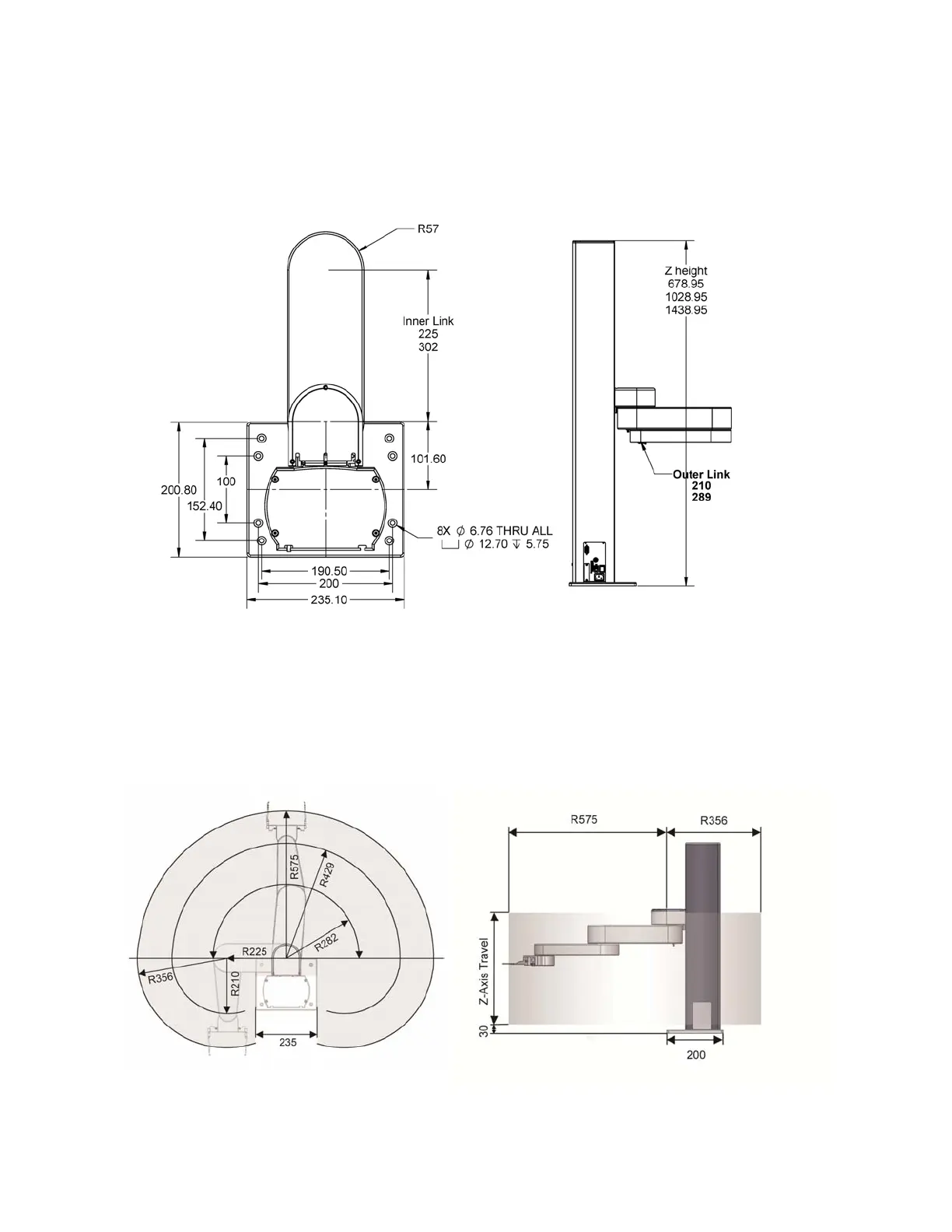 (For XR robot, R575 increases to R731 and inner link length increases from 225 to 302mm)