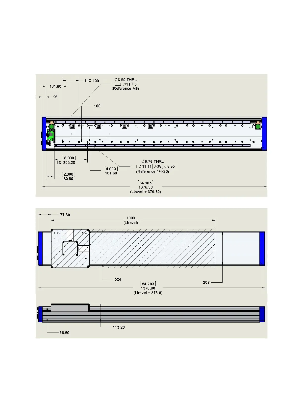 PreCise PF3400 - Linear Axis Mounting Dimensions
