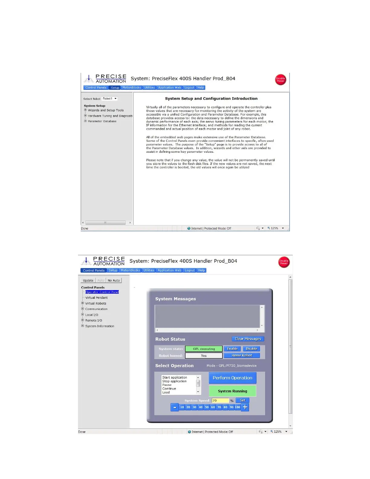 Click on “Control Panels”, then “Operator Control Panel”. The window below will appear.