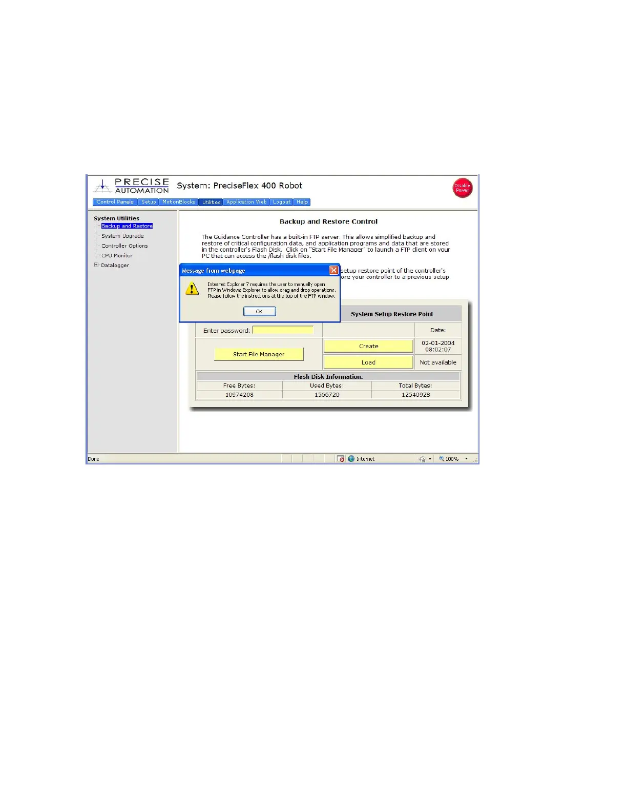 5. In the Web Based Operator Interface, select “Utilities/Backup and Restore