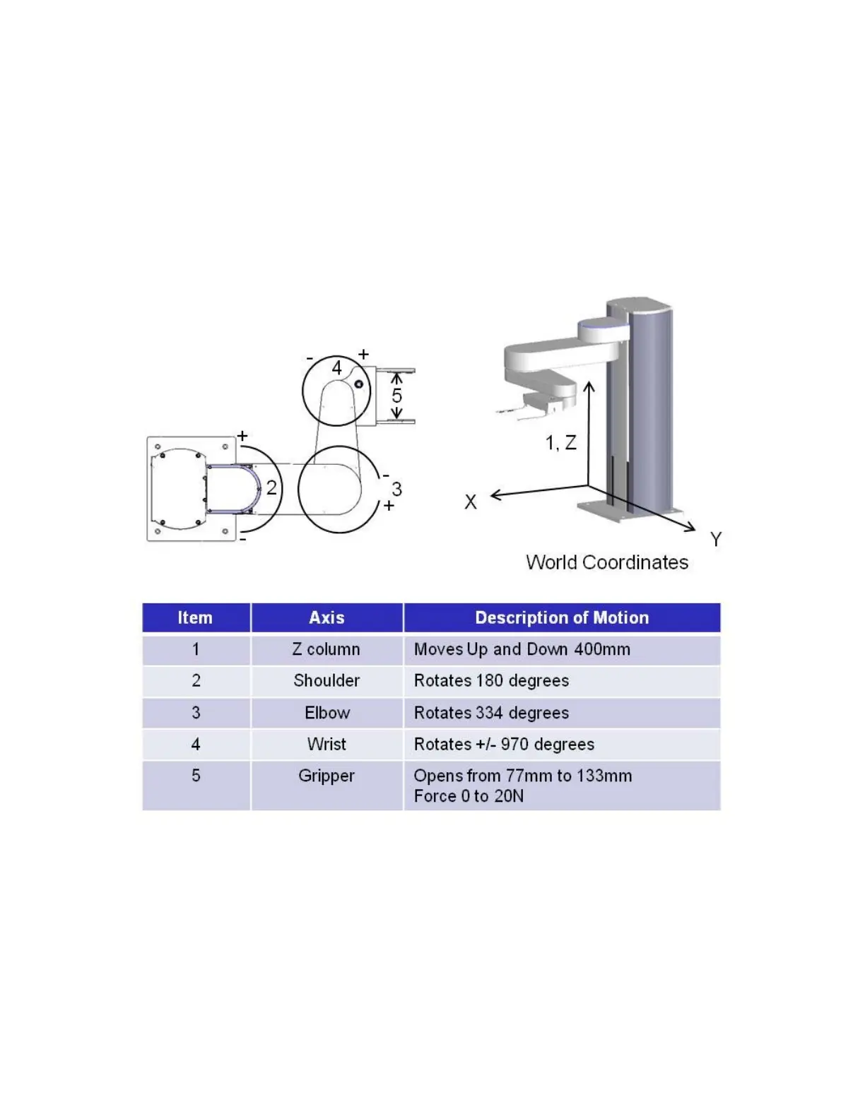 Z=30mm in the World Coordinate system. As the robot arm moves upwards, both its joint position and the