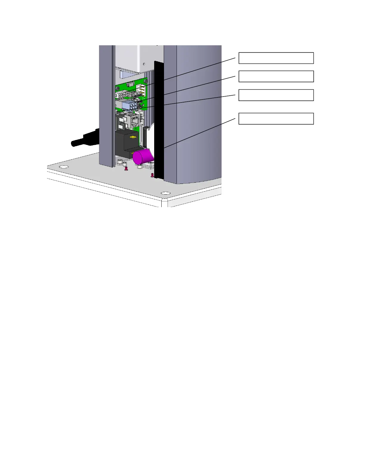 16. Remove the 4 M3 X 8 SHCS and lock washers to replace the power supply or energy dump PCA.
