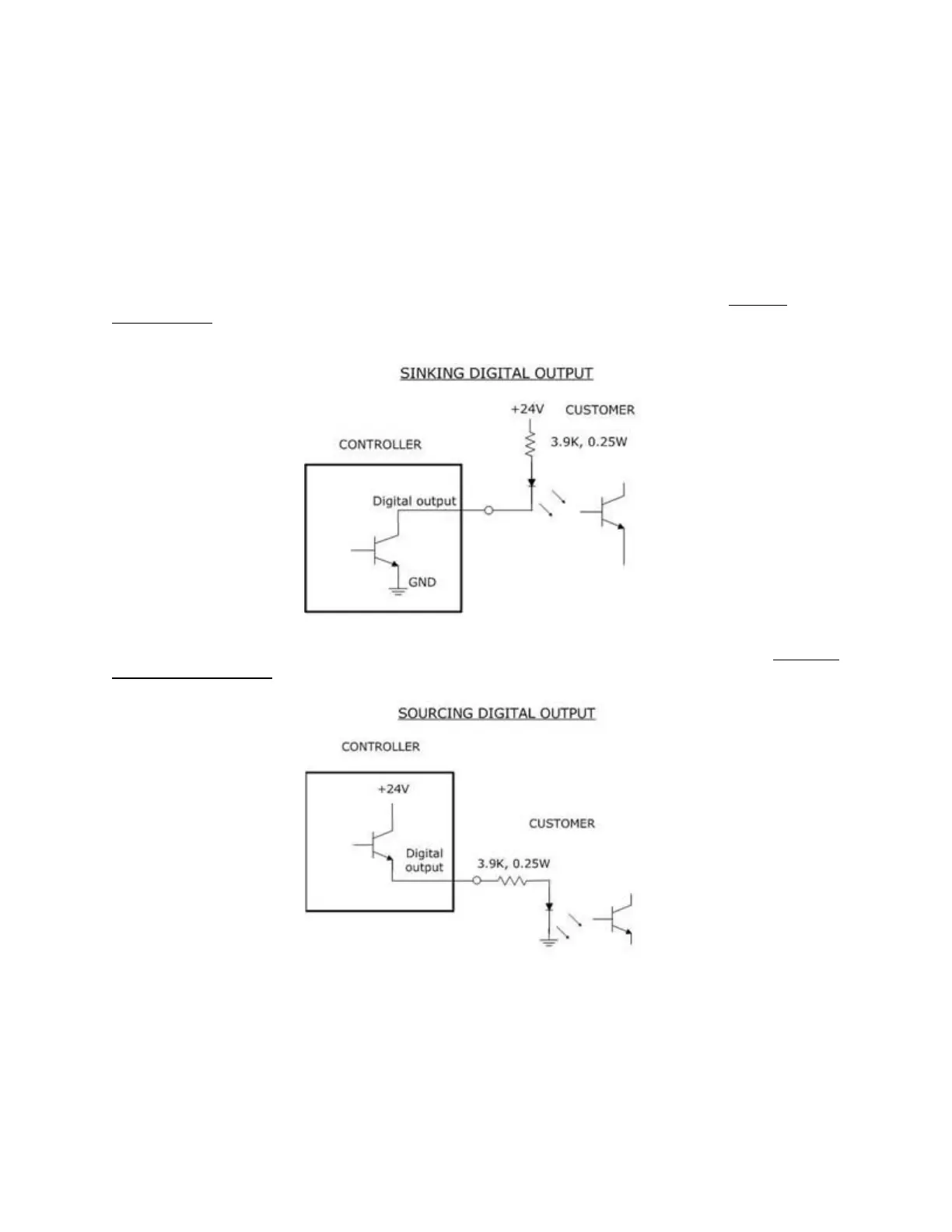 Alternately, the output signals can be configured as "sourcing", i.e. the external equipment must pull down