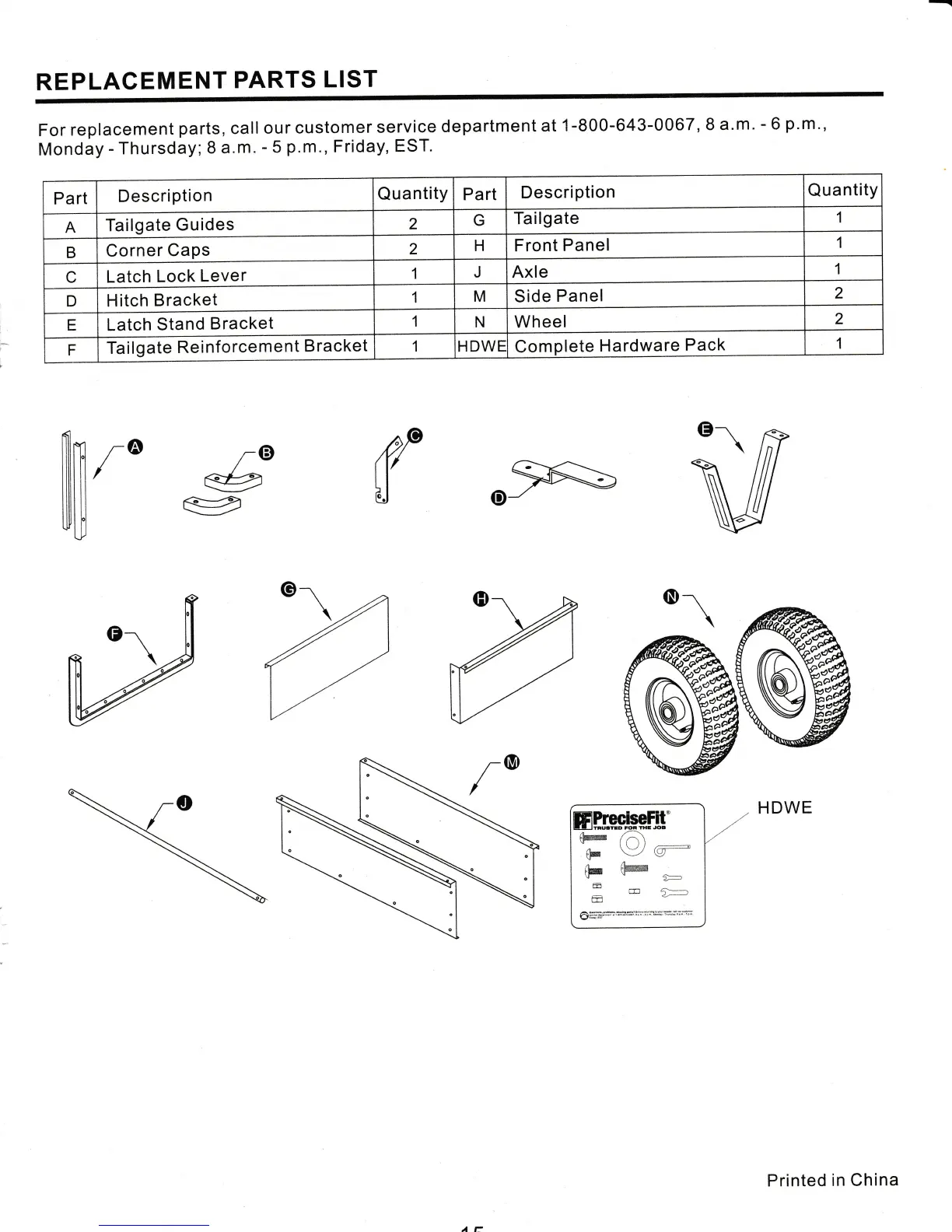 PreciseFit DC0001-N - Replacement Parts List