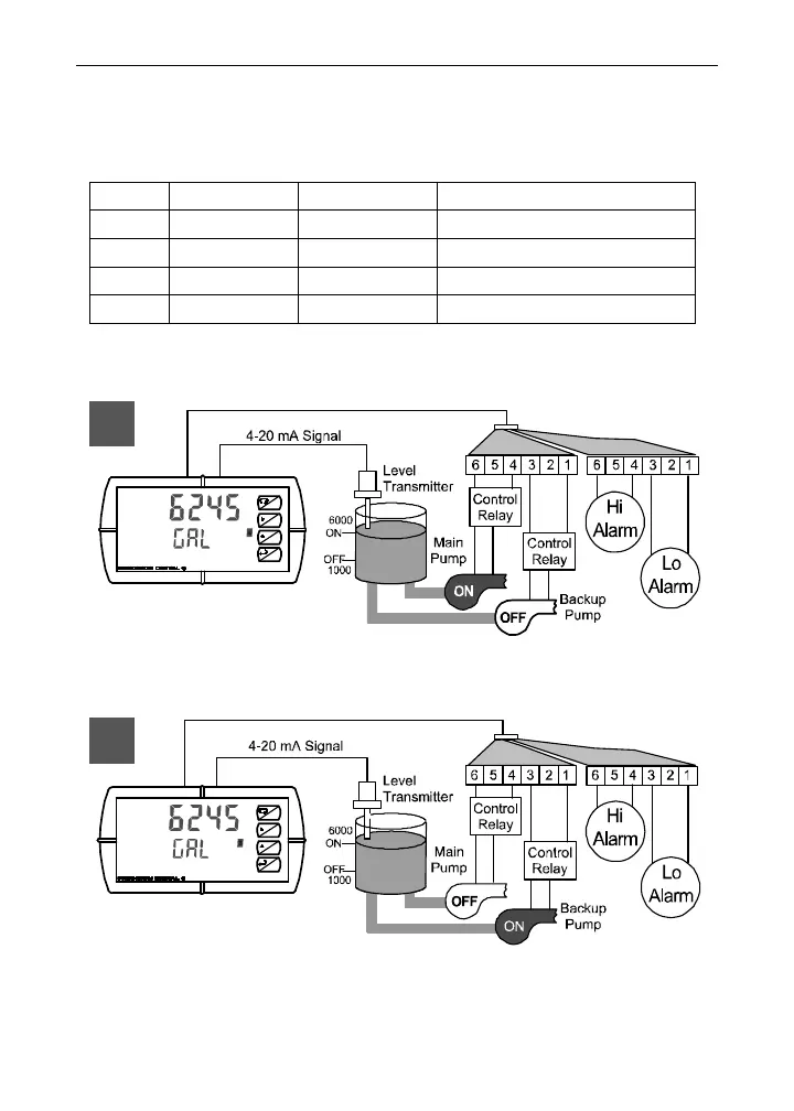 1. Relays 1 and 2 are set up for low and high alarm indication.