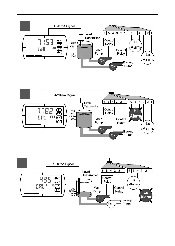 4. Relay #2 trips the High Level Alarm at 7500 gallons and resets at