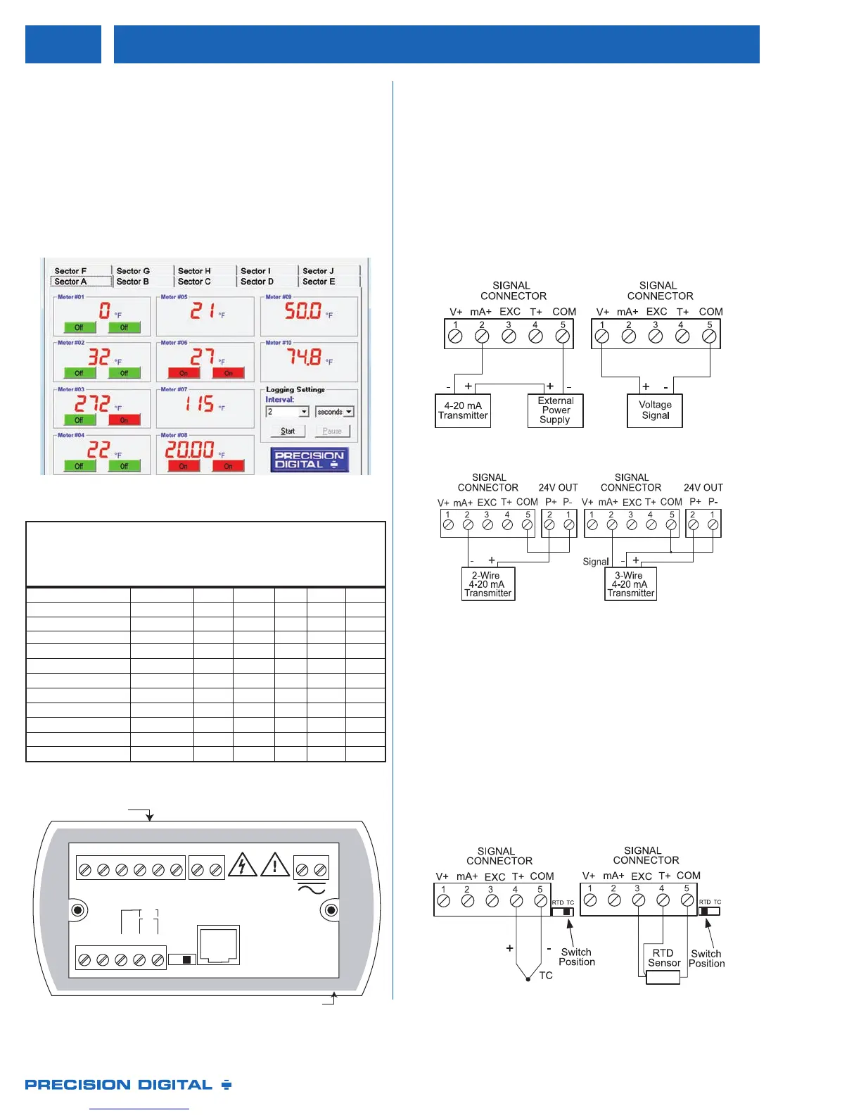 The Trident is factory calibrated to accept 4-20 mA, ±10 VDC,