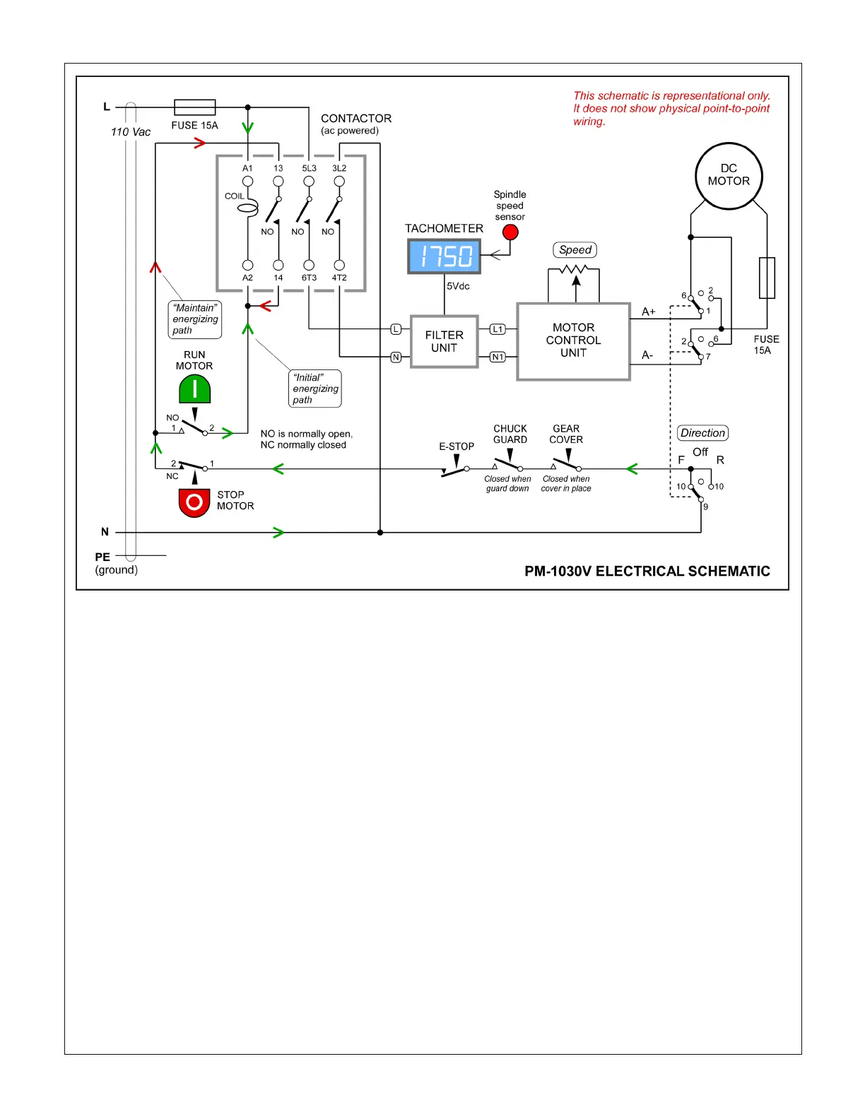 MOTOR, E-Stop, Chuck Guard, and Gear Cover.