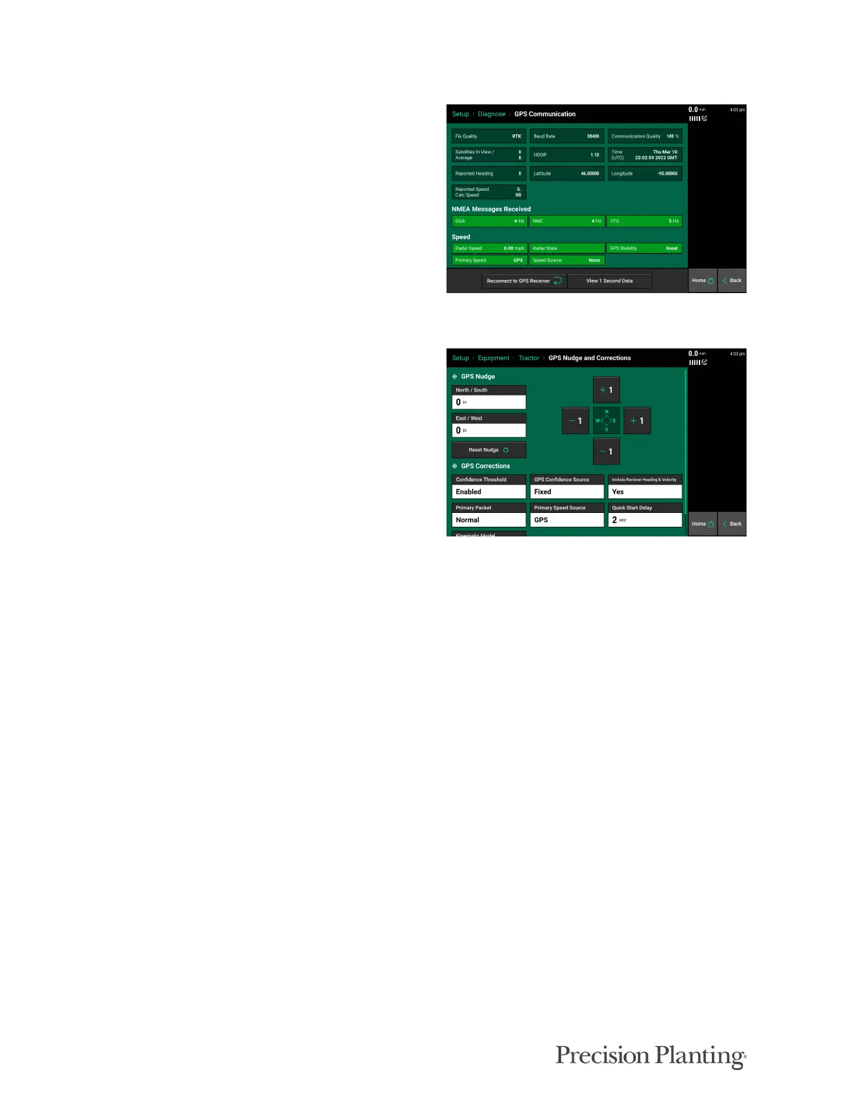 Note: Do not change any of the GPS correction settings unless instructed to do so by a Dealer or