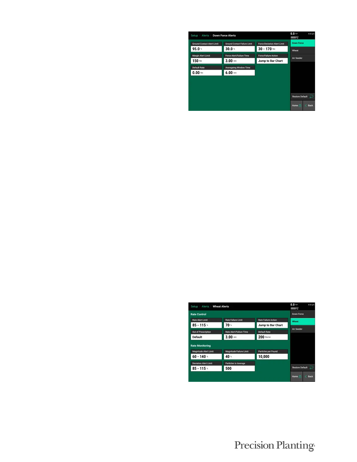 Force Alert/Failure Time- The length of time the force alert/alarm must stay in that state before