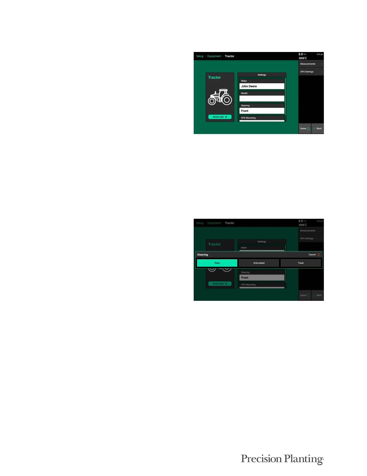 Select the Measurements Tab to enter the Tractor GPS Measurements. These must be setup prior