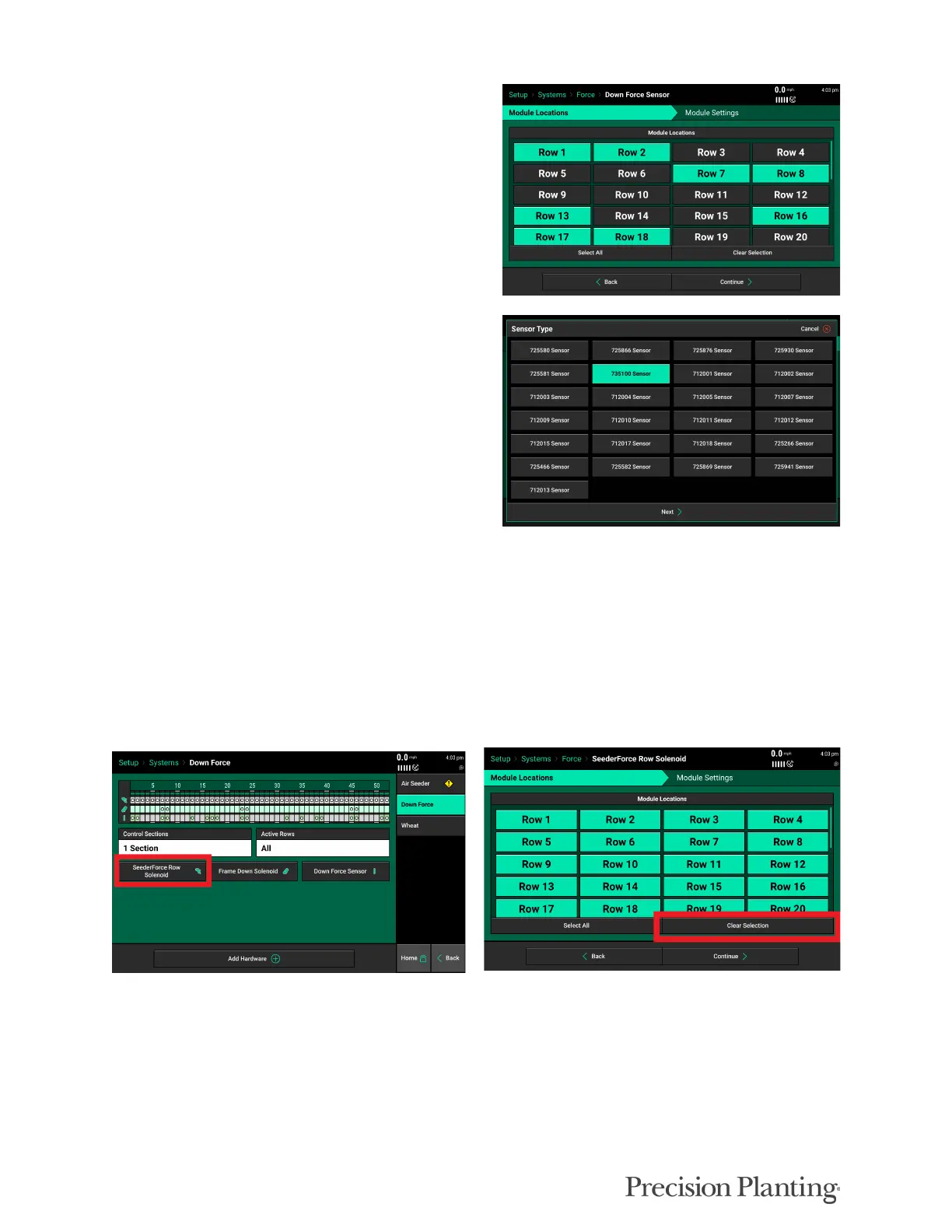 Change the Sensor Type to 735100 for all Seeder