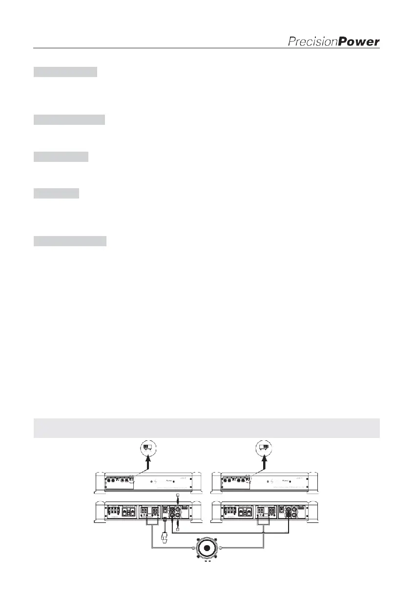 On the slave amplifier be sure to turn off all crossovers. For the speaker connections, connect