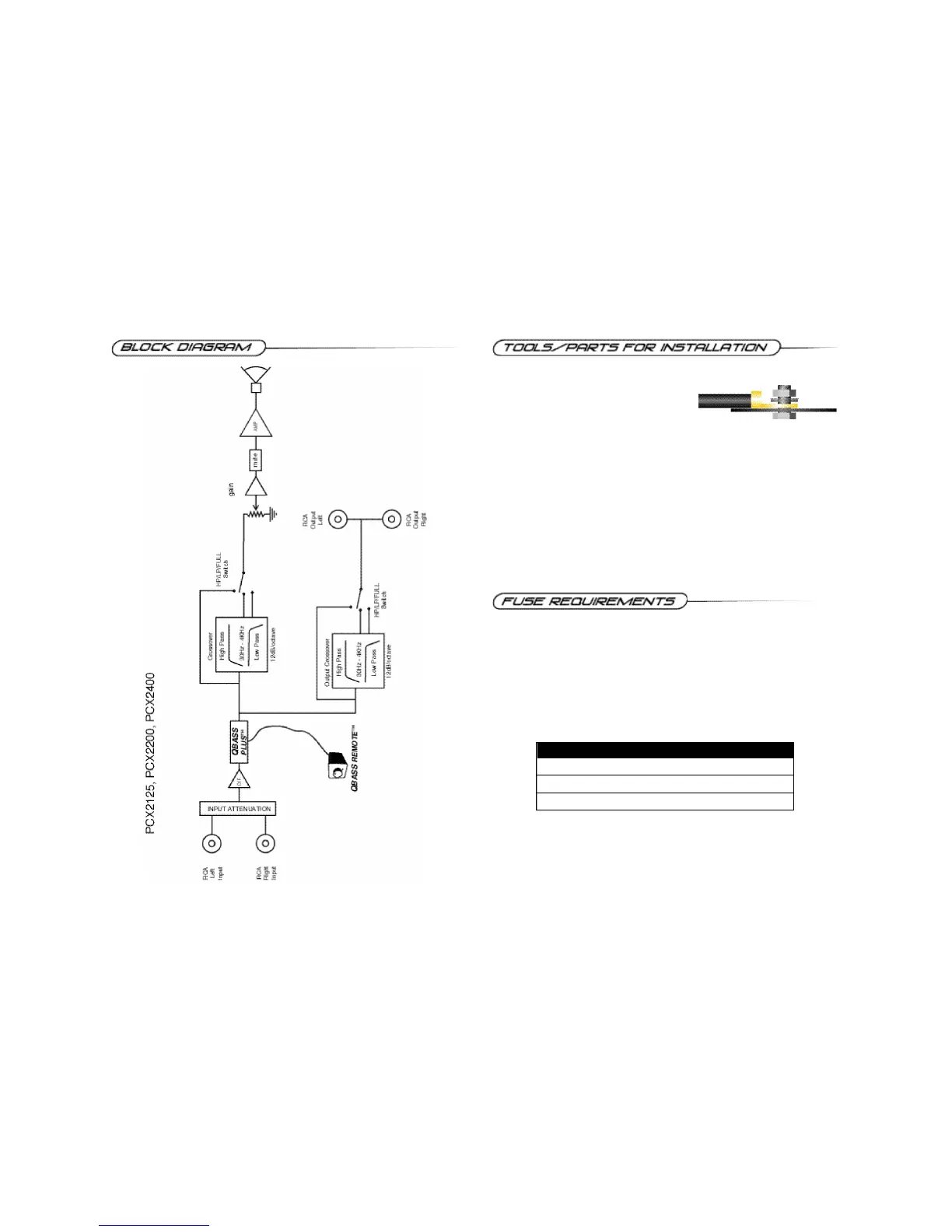 using one amplifier, use the fuse rating indicated in this chart. If you are using