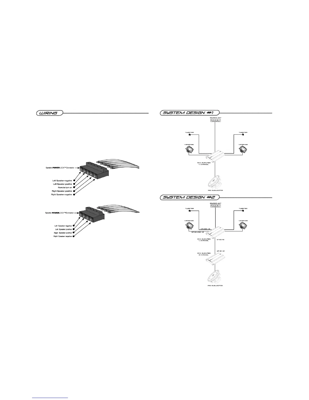 On 4 and 5 channel P C X Amplifiers,all speaker P o w e rL o c k s plug into the amplifier