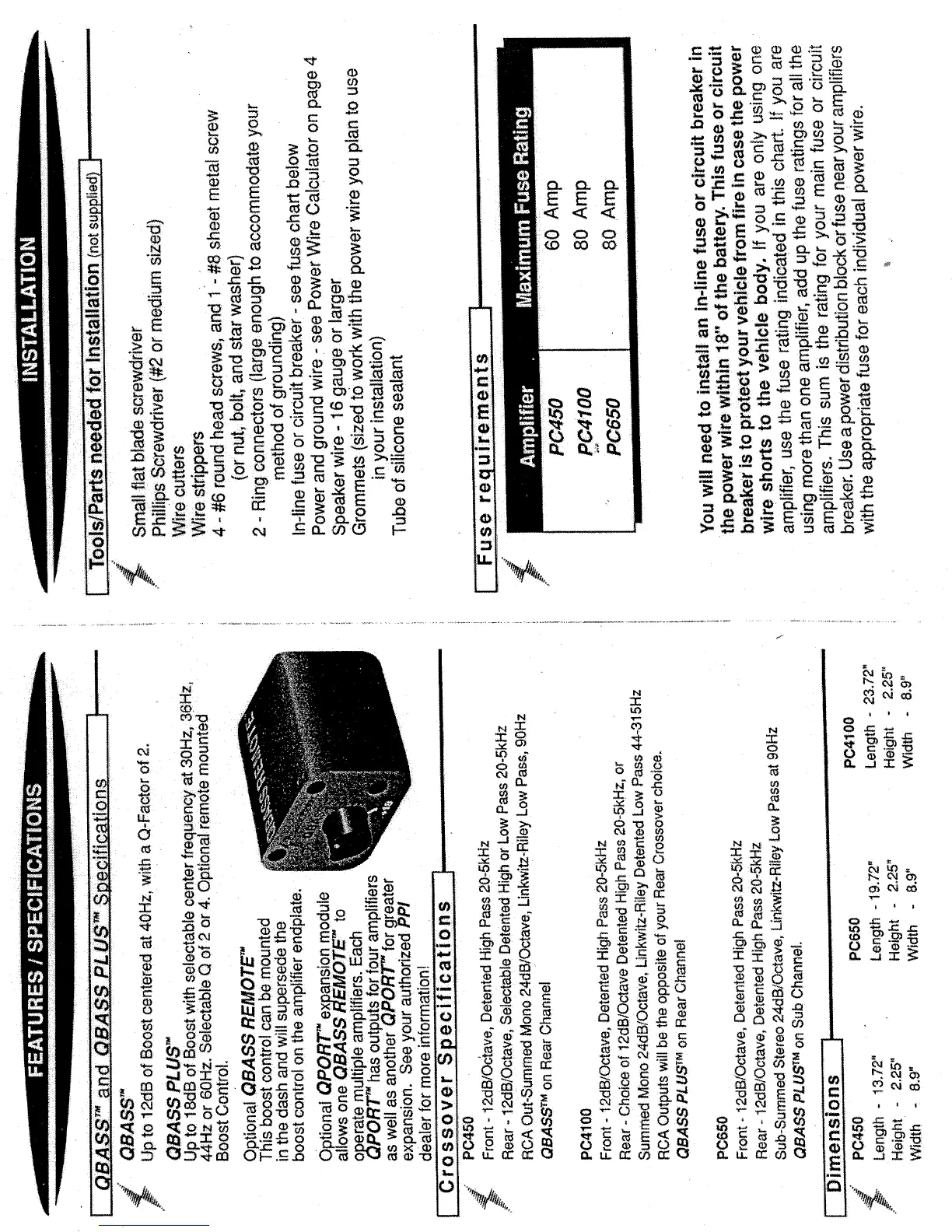 Precision Power Power Class - Detailed Specifications; QBASS and QBASS PLUS Specifications; Crossover Specifications; Unit Dimensions