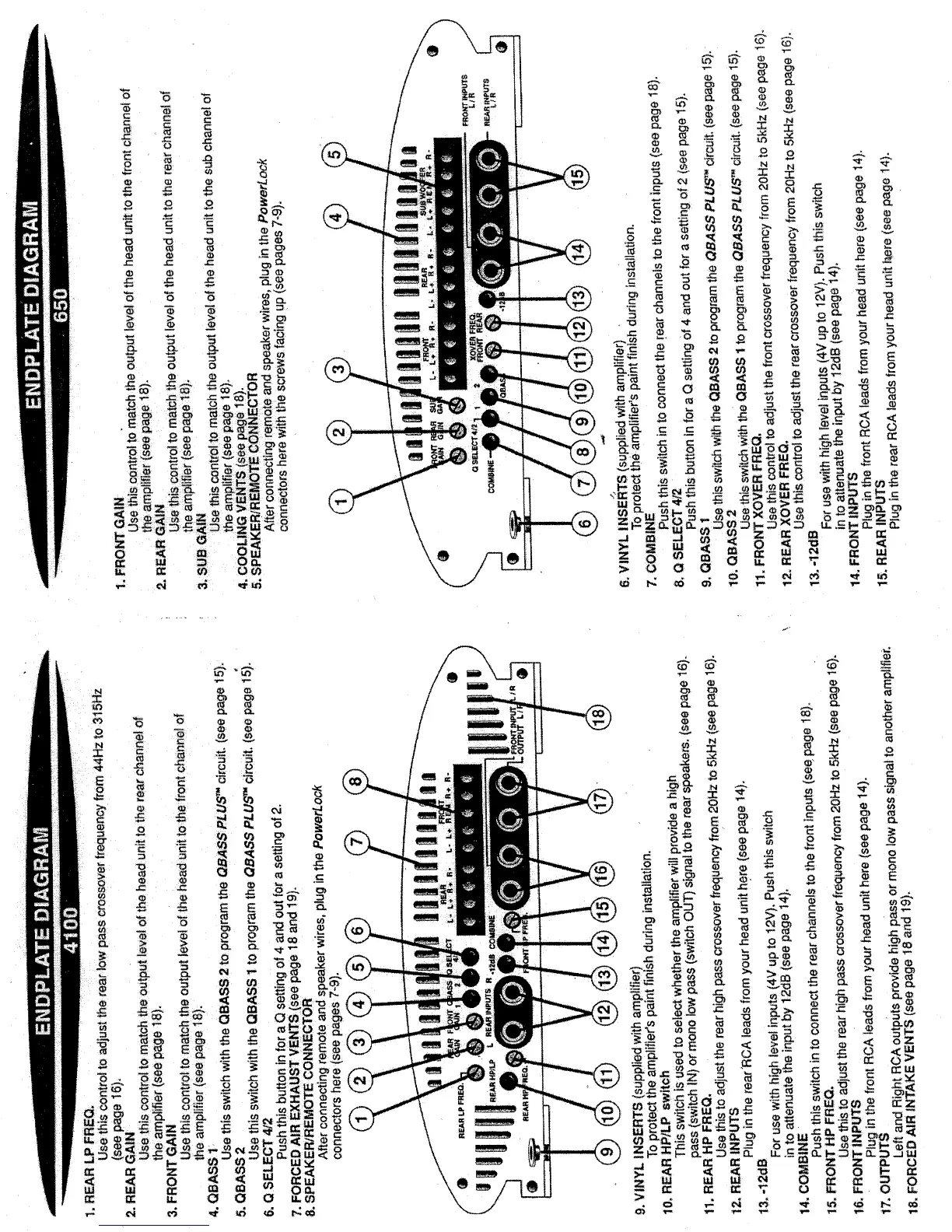 Precision Power Power Class - Endplate Diagrams and Controls (PC4100;PC650); Front Gain Control; Rear Gain Control; Subwoofer Gain Control