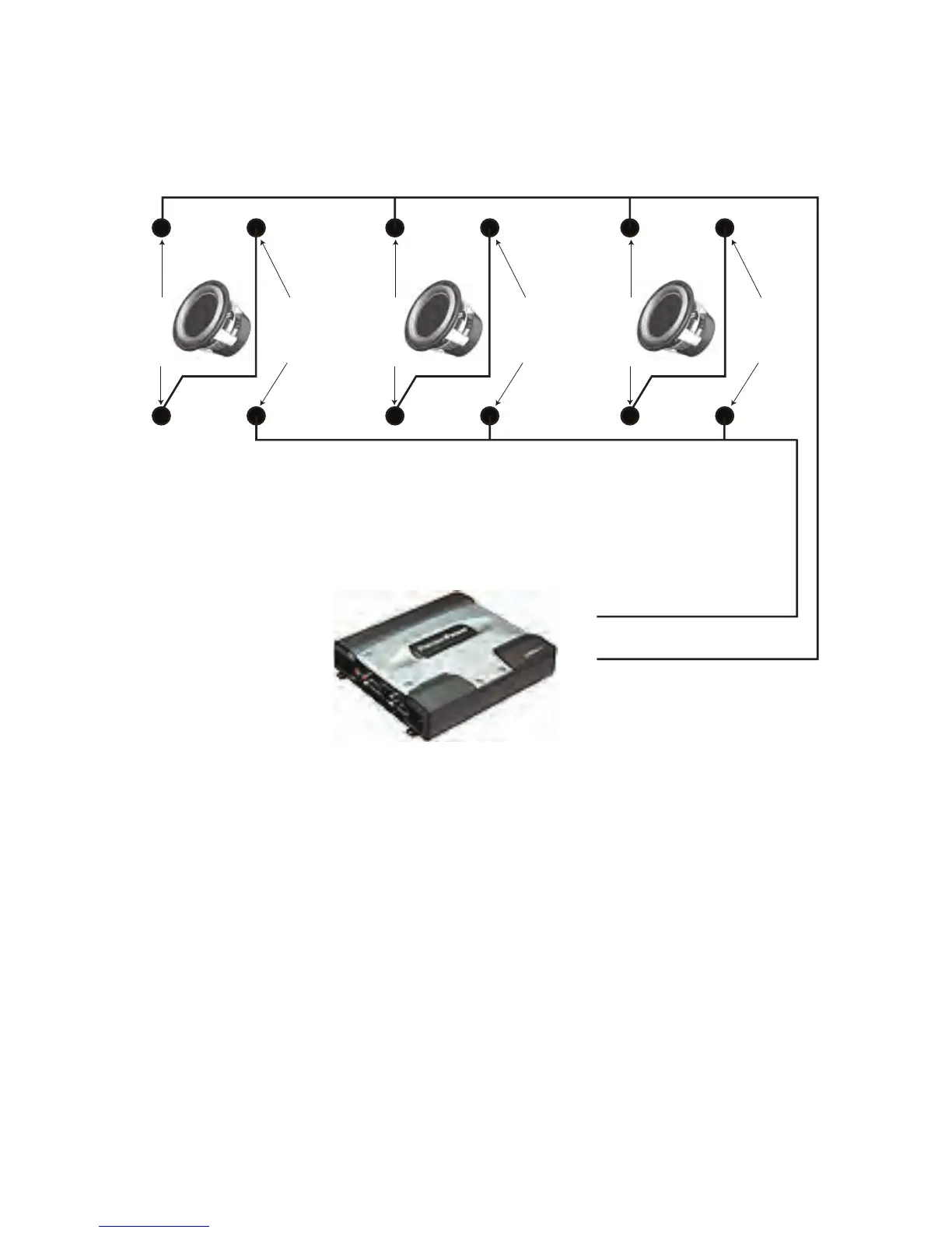 terminal of the second coil of each woofer to the negative (-)