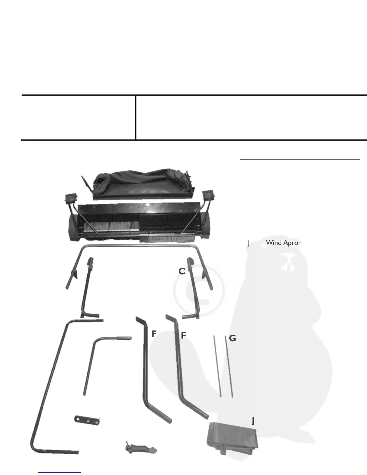 Remove all Sweeper Parts from carton. Make sure all parts and assemblies are