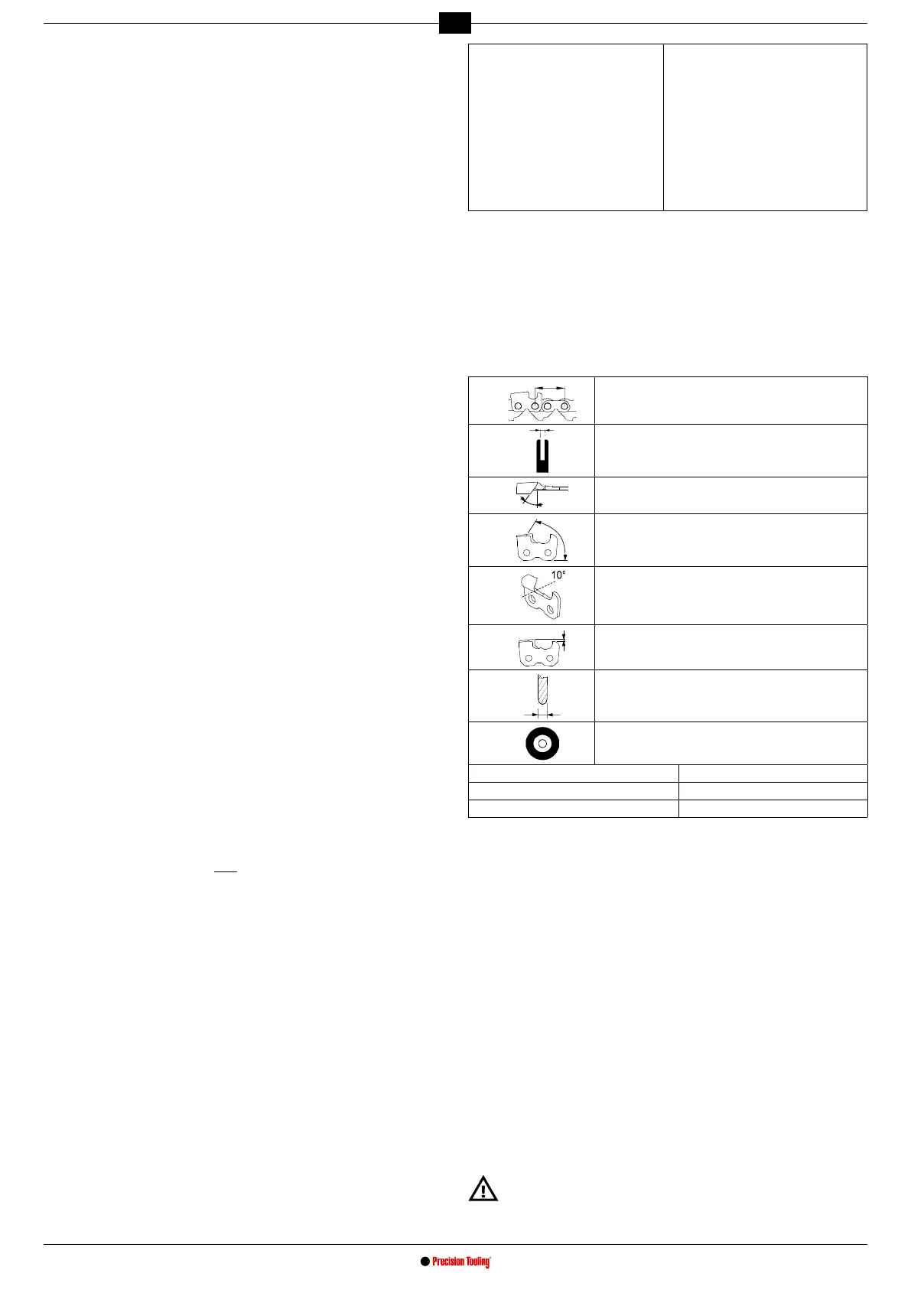 - Die Schleifscheibe auf der Basis des zu schleifenden Kettentyps auswählen (Spalte