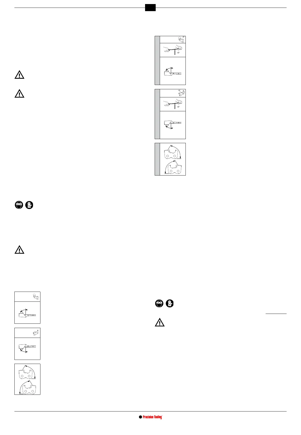 - Die Kette vorlaufen lassen, um den nächsten Zahn zu schleifen.