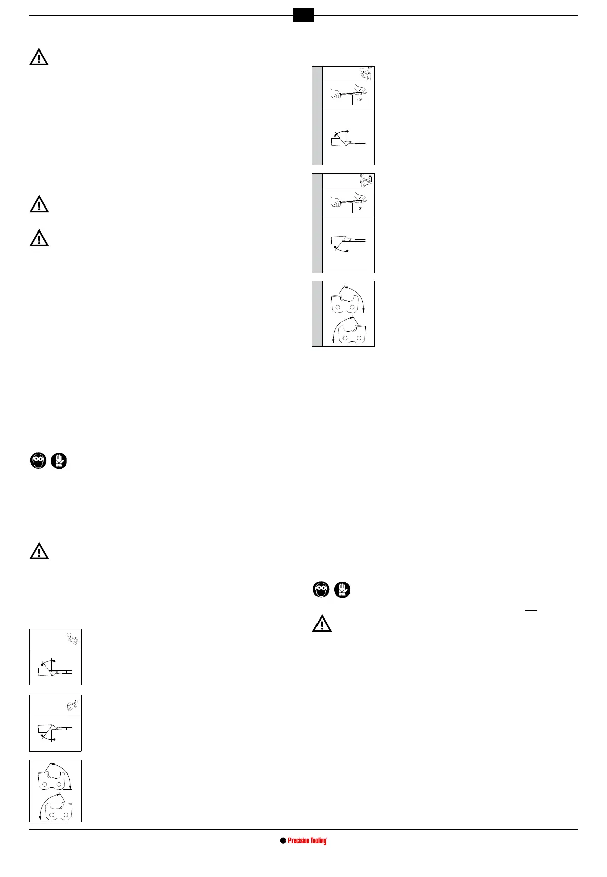 - Laat de ketting naar voren bewegen om de volgende tand die geslepen moet worden
