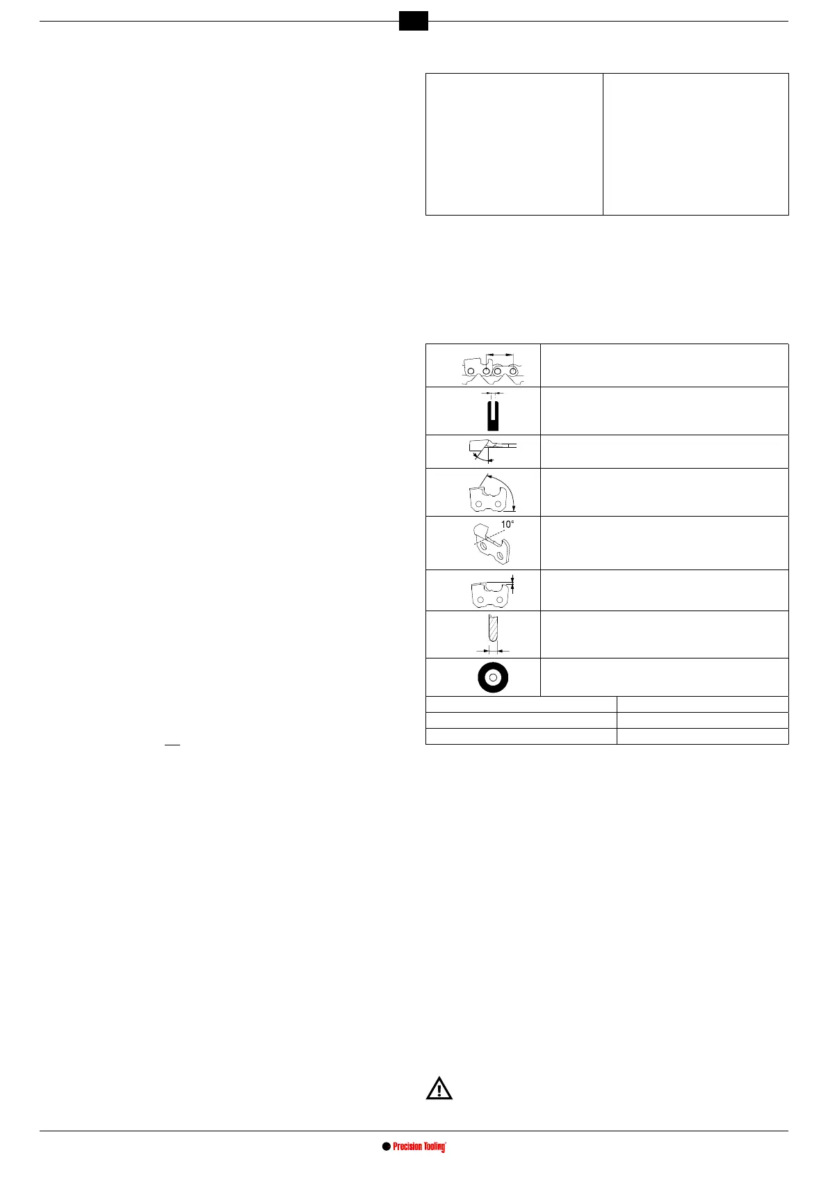 - Välj slipskiva baserat på typen av kedja som ska slipas (kolumn H i