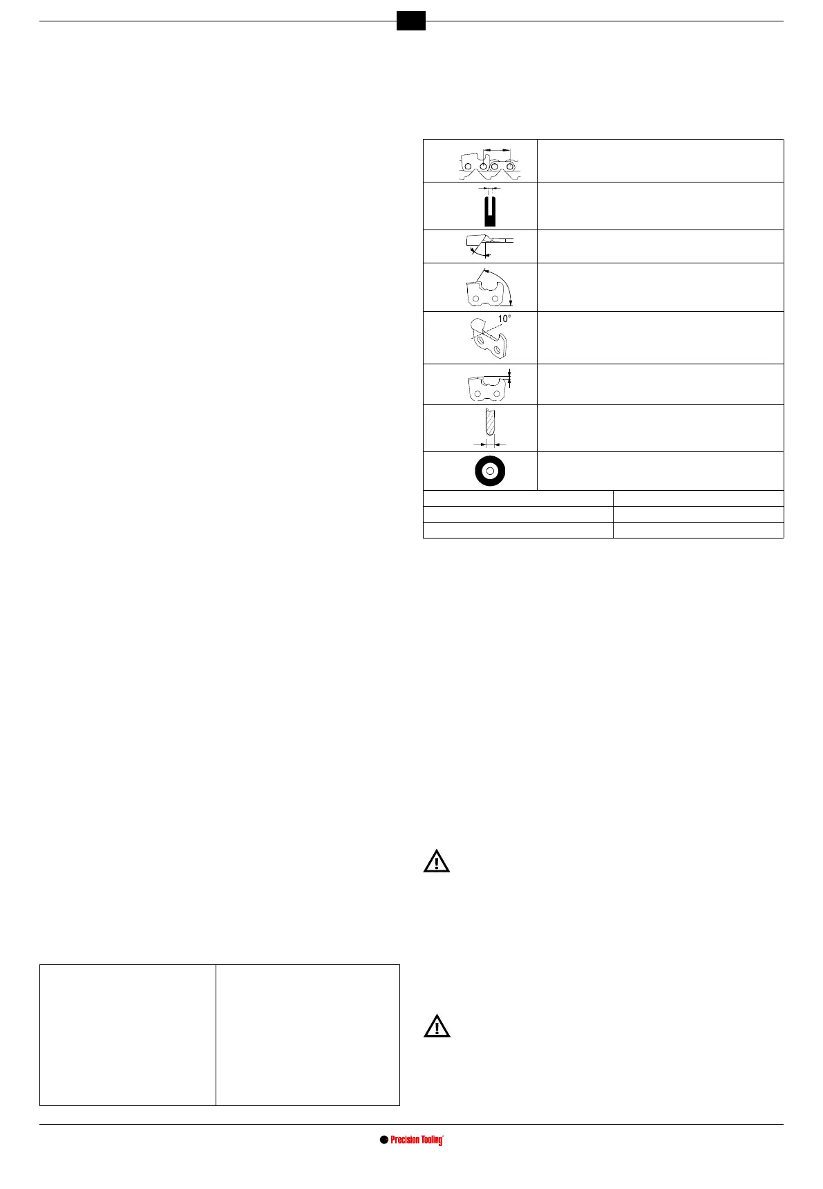 - Choose the grinding wheel based on the type of chain to be sharpened (column H