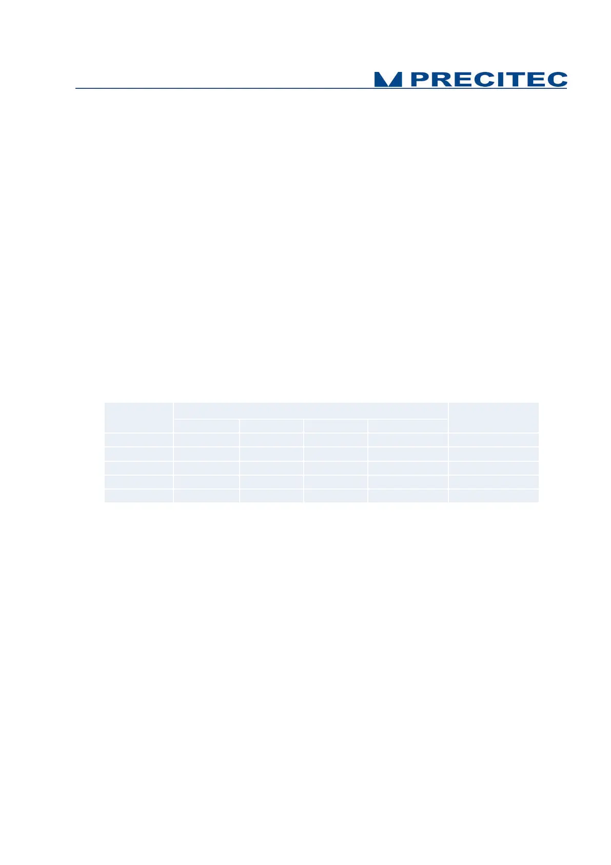 The following table defines the accessible measuring range and number of transmitted data as a