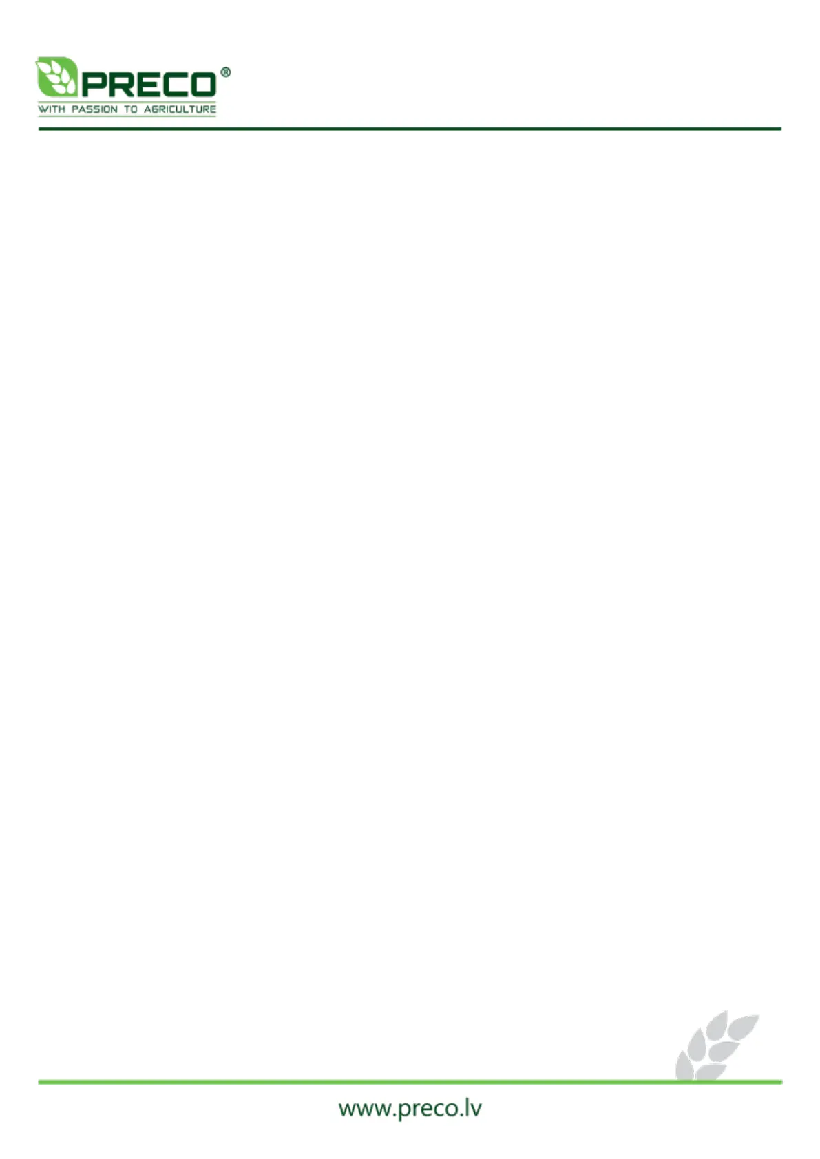 Preco S Series - Table of Contents