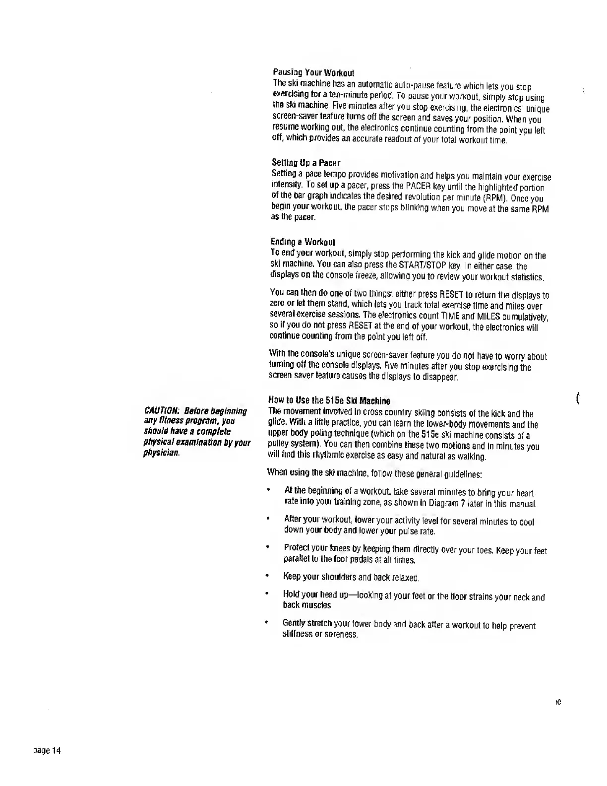 Precor 515e - Pausing Your Workout; Setting up a Pacer; Ending a Workout. I; How to Use the 515 E Ski Machine. I