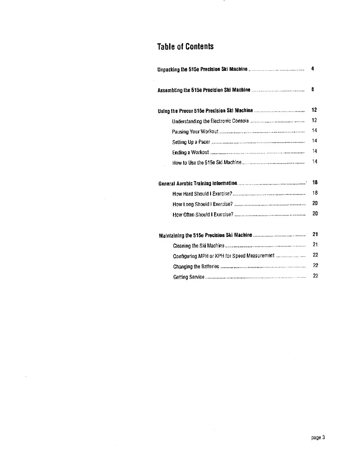 Precor 515e - Table of Contents